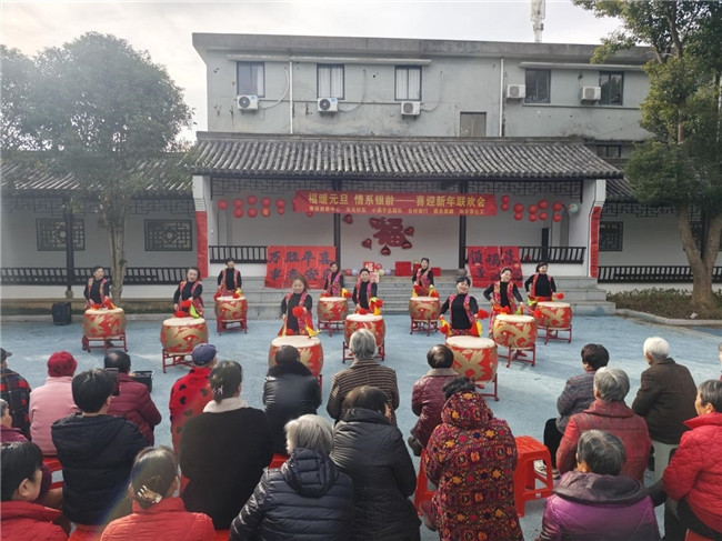 另一边,草塔居家养老服务中心的大广场喜气洋洋,“福暖元旦,情系银龄”喜迎新年联欢会温情上演,50余位天元社区老人共享欢乐时光。活动在万年青电吹管班的悠扬演奏中拉开序幕,姐妹锣鼓队的铿锵鼓点瞬间点燃全场气氛。小燕子志愿队带来的扇舞《逍遥一场》、舞蹈《美人吟》等节目轮番登场,展现了老年群体的饱满精神风貌。翰墨送福区前,书法家杨老师挥毫泼墨,书写吉祥“福”字,即兴绘制骏马图,以“马到成功,福运连绵”的美好寓意馈赠长者。便民服务区内,爱心义剪、健康咨询、反诈宣传同步开展,台州银行送上的暖心礼品更添节日暖意。全场共同参与的手舞操《苹果香》将活动推向高潮,老少同乐的温馨场景定格成最美的新年画面。