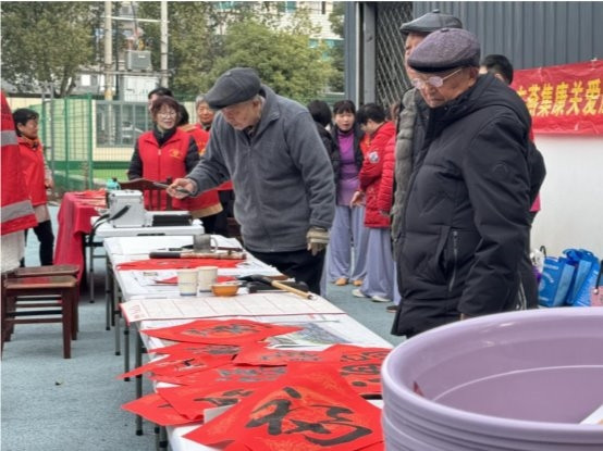 在大唐街道乐龄中心,开展的“共聚兴唐游园会・唐唐守护暖新年”活动,吸引了兴唐社区近60位老人齐聚一堂,共同参与“趣忆站”“暖心站”“康养站”“安心站”“合艺站”五大特色站点的打卡互动。“趣忆站”的幸福套圈与打卡拍照让老人们重拾童年乐趣;“暖心站”提供的免费血压检测、口腔检查等服务,将健康关怀送到身边;“康养站”里,医保部门工作人员与养老服务专员现场答疑,详解长护险、惠民保险等政策福利;大唐派出所民警通过反诈宣传与安全转盘游戏,为老人晚年生活筑牢安全防线;“合艺站”的剪纸体验则让老人们在剪刀翻飞间传承传统手艺,寄托新年期许。集章兑换的“温暖礼包”更是让老人们笑意盈盈,78岁的张阿姨由衷赞叹:“党领导得好,政府关怀到位,我们老年人的生活太幸福了!”